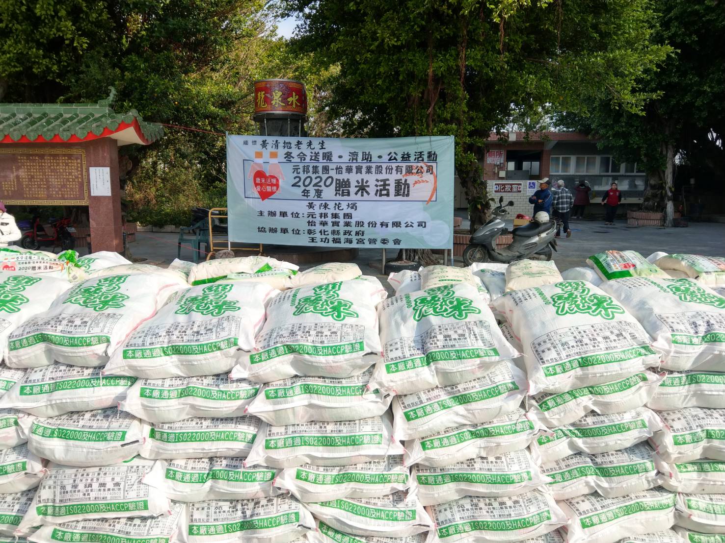 為歲末送暖、愛心公益,由元邦集團、怡華實業、黃陳花燭主辦,彰化縣政府及王功福海宮管委會一同協辦2020年度贈米活動..